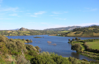 Il lago Omodeo, in provincia di Oristano e nei pressi di Ghilarza: di origine artificiale, durante i mesi estivi si può vedere il nuraghe di Serra Lintia.